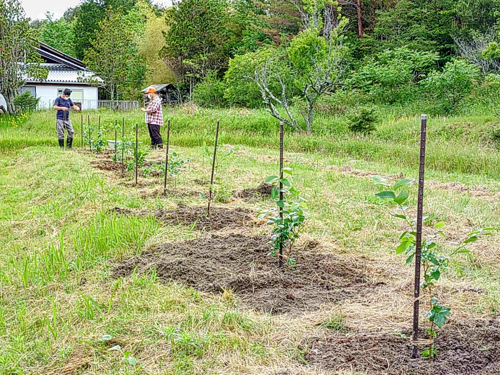 今日は日曜日で利用者さんも少ないですが、ブルーベリーの苗が届き雨も上がったので、早速以前植えたのとはべつの田圃に植えてもらいました。